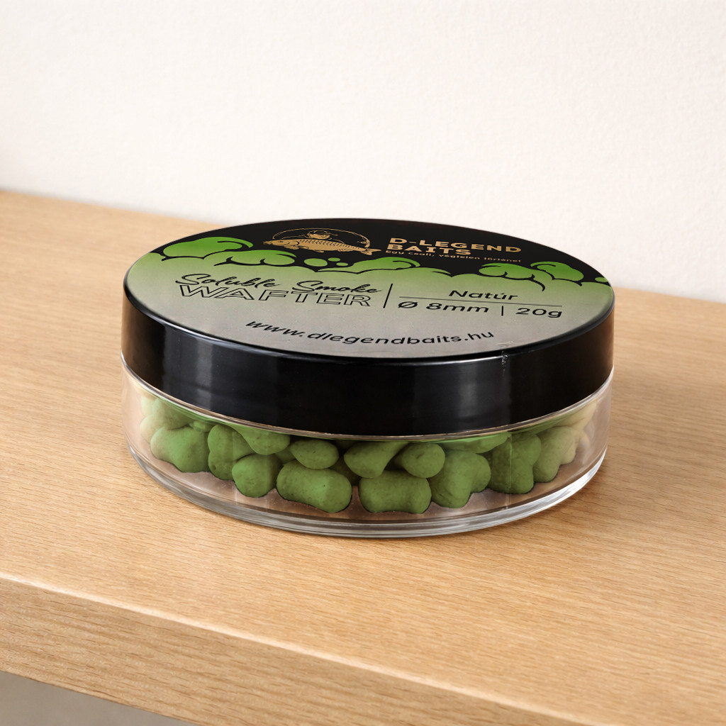 A D-Legend Baits Soluble Smoke Wafter – Natúr egy gyorsan oldódó, füstölgő prémium wafter csali, amely látványos fluo zöld felhőt képez a vízben. Oldódása során intenzív vizuális ingereket hoz létre, így messziről felkelti a pontyok és amurok figyelmét, aromák és illatok nélkül is. Wafter jellegének köszönhetően kiegyensúlyozottan viselkedik a horog mellett, természetes, letisztult prezentációt biztosít még nehezebb mederfenéken is. Versenyeken és gyors pecákon kifejezetten hatékony, amikor az azonnali vizuális csalogatóhatás a kulcs a kapások kiváltásához. Ez a csali igazi ütőkártya, amikor a natúr, de látványosan oldódó megoldások hozzák a legtöbb halat.
